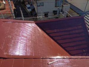 屋根も下塗り、中塗り、上塗りの3回塗りで塗装します。