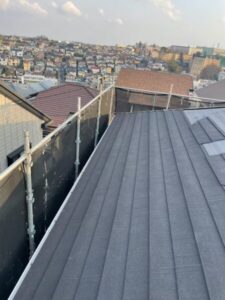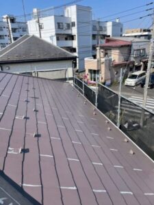 本格工事までの間、ルーフィングによる仮防水とコーキング補修を行わせて頂き、後日、カバー工法にて改修工事にはいらせて頂きました。
