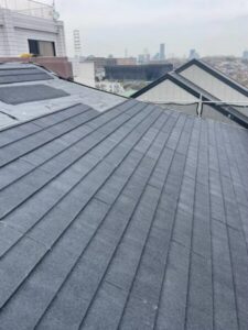 現地調査の結果、屋根材のひび割れとルーフィングの劣化が進行しており、特に棟部分の傷みが深刻な状態でした。