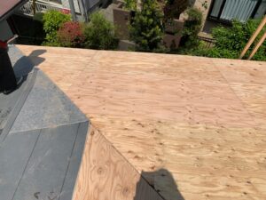腐食した下地を補強するため、新しい野地板を張って、屋根の強度を高めます。